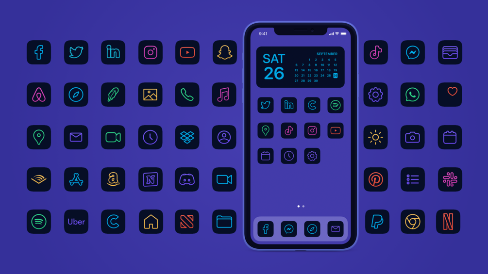 Simple, beautiful set of 45 custom designed app icons for iOS 14. Includes a colored version, a black version and a white version.